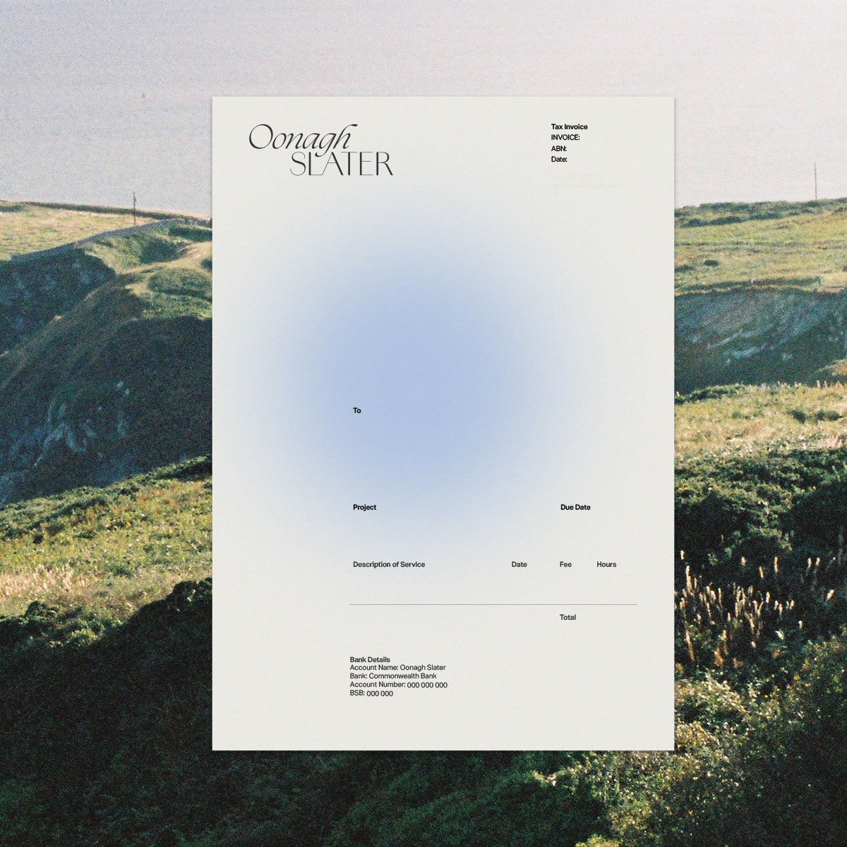 Brand identity and invoice design for Oonagh Slater, a contemporary dancer based in Narrm/Melbourne.